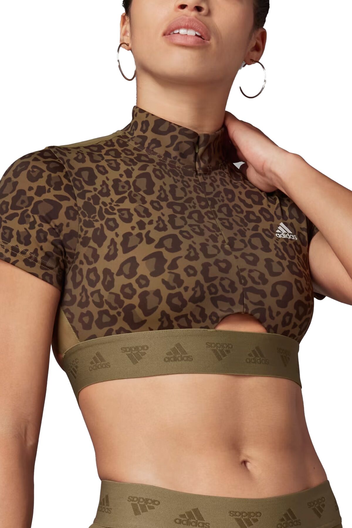 Adidas Yarım Fermuarlı Kadın Crop T-Shirt - HM8641 Leopar