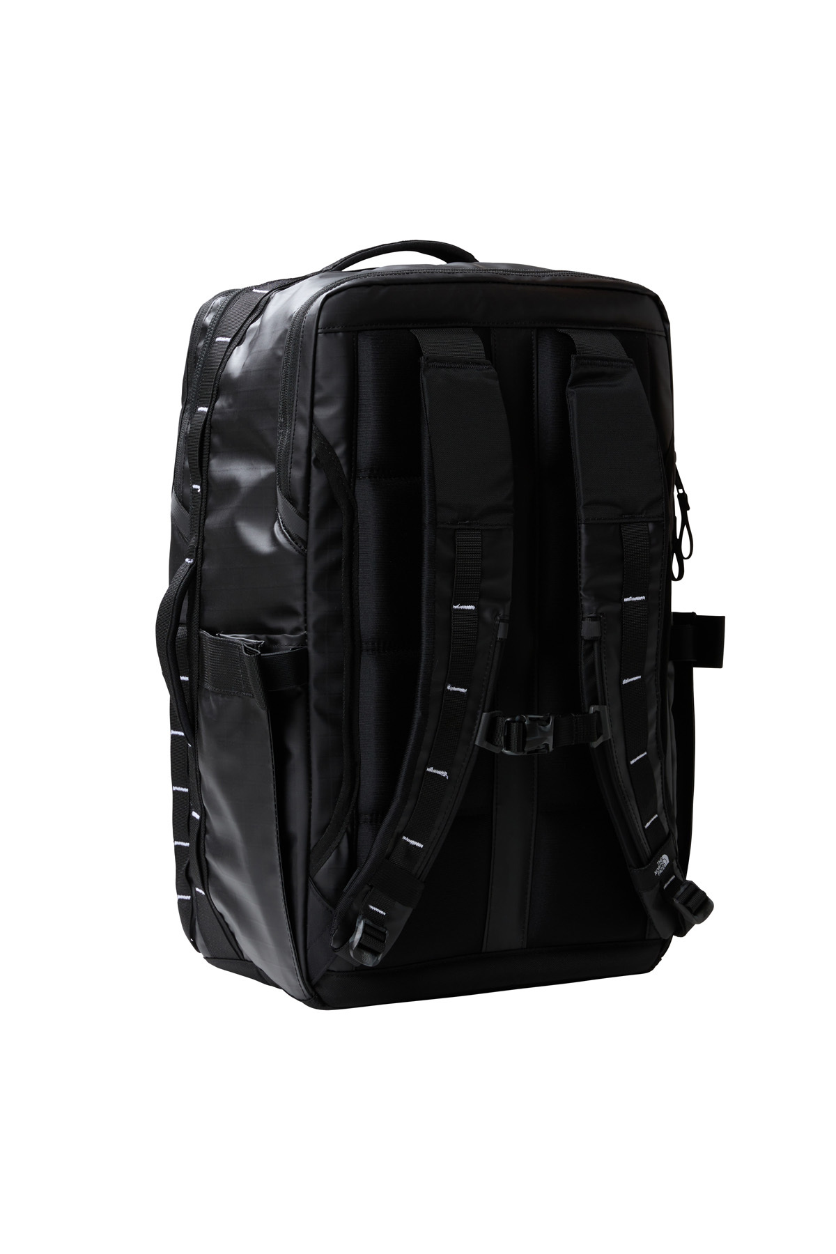 İkonik Base Camp Voyager Duffel çantamızdan ilham alınan bu sırt çantası yine aynı şekilde ücra köşelere yapılan keşif gezileri yerine seyahate odaklanılarak hafif ve kolay kullanılacak şekilde tasarlanmıştır. Omuz askıları ve arka paneli havaalanında geçirilen saatlerde uzun süreli konfor için dolguludur. Dolgulu dizüstü bilgisayar bölmesi ve iki adet su şişesinin yanı sıra, pasaportunun, telefonunun ve diğer seyahat eşyalarının her an elinin altında olması için dış fermuarlı cebi bulunur. Üç adet dolgulu sapı çantayı taşımayı kolaylaştırır ve valiz bağlantısı sayesinde çantayı tekerlekli valize bağlayabilirsin. Ayrıca, geri dönüştürülmüş materyalden üretildiği için doğaya karşı da saygılıdır. Maceralarında ihtiyaç duyacağın bütün eşyalarını doldur.