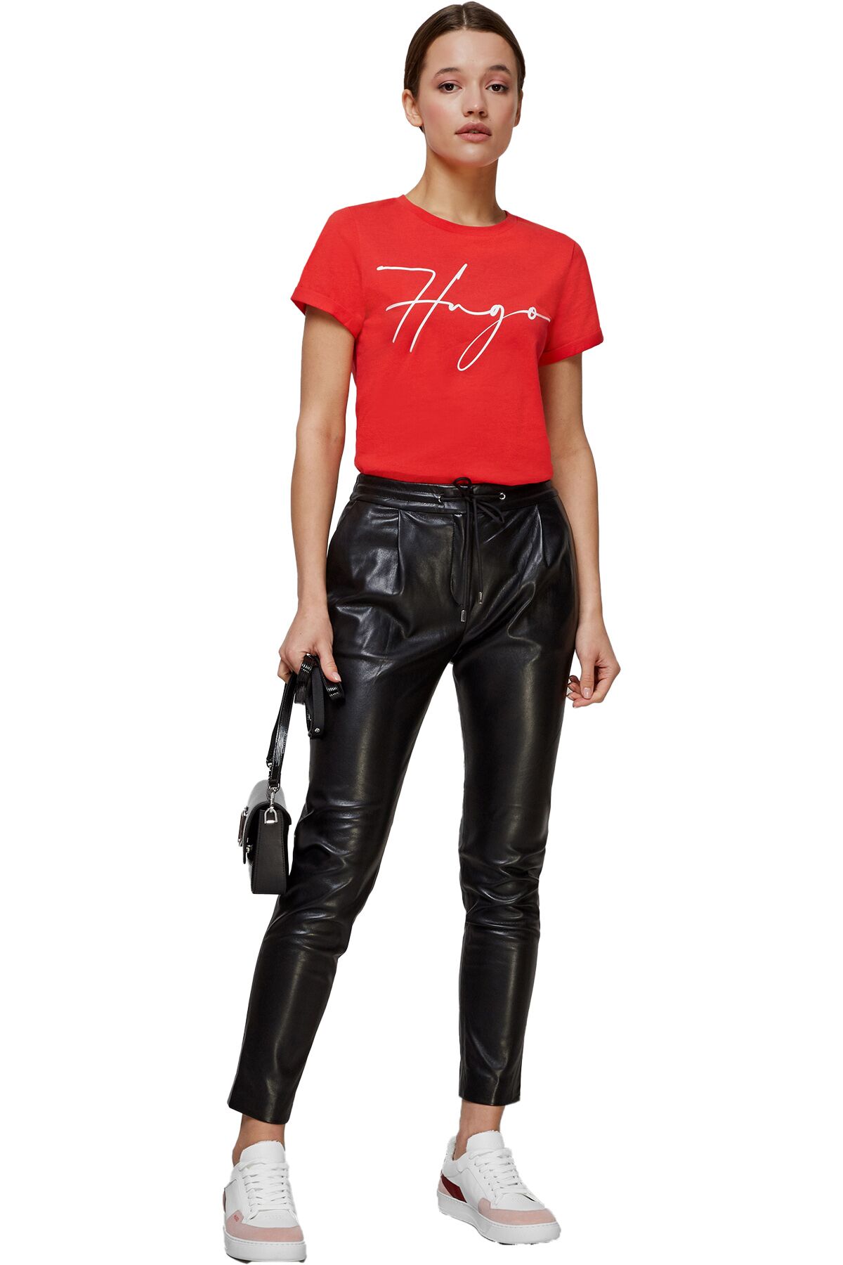 El Yazısı Logolu Organik Pamuklu Dar Kesim T-Shirt - 50467249 Kırmızı